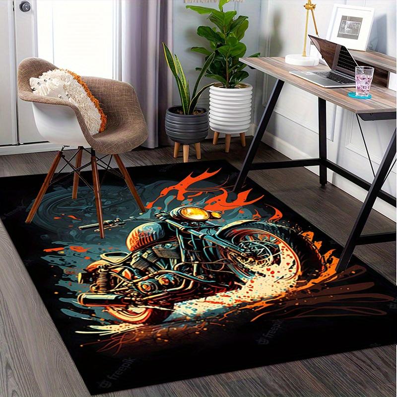 1pc Motorcycle,Flame,Artwork Office Carpet Soft Polyester Non Slip Machine Washable Indoor Carpet Li