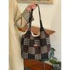 Retro Check Pattern Patchwork Tote Bag - Large Capacity Hand-held Shoulder Bag