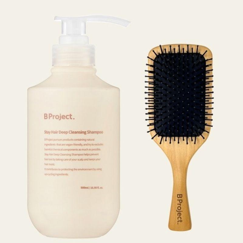 B Project Vegan Stay Hair Deep Cleansing Shampoo + Wood Brush (Scalp Care)