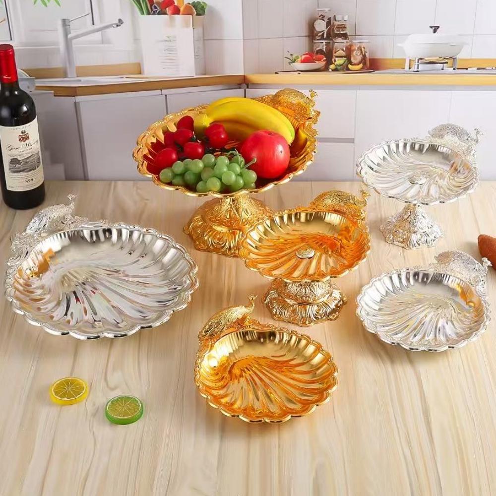 Multiple Sizes Peacock Shape Fruit Tray,Retro Alloy Engraving Shell Texture Home Cheese Food Plate,Snack Disc Table Decoration
