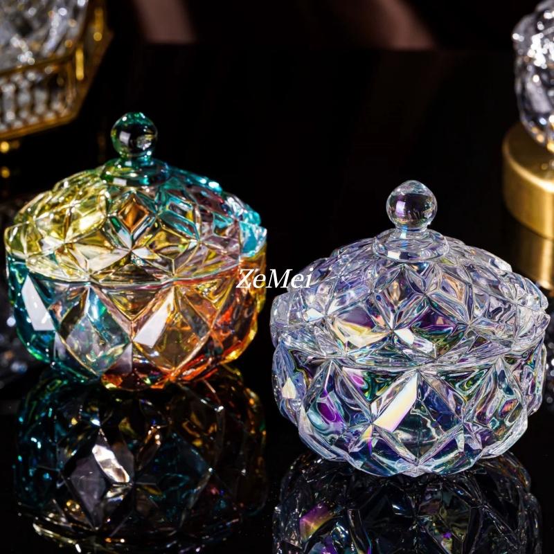 Circular Crystal Glass Storage Jar,Jewelry Organizer Candy Glass Jar With Lid Aromatherapy Candlestick Container Home Decoration