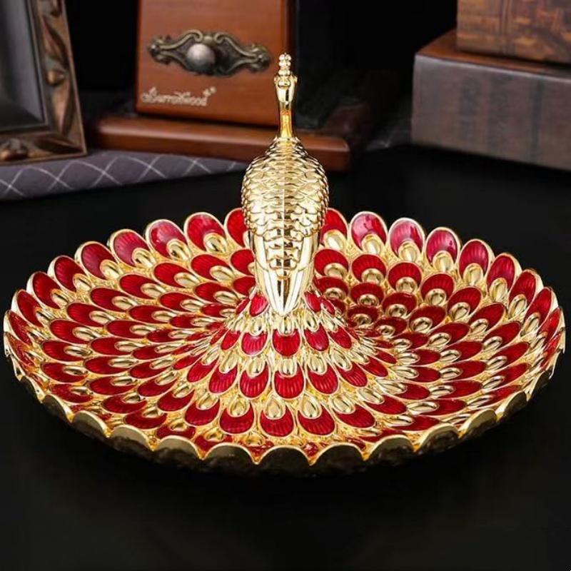 Circular Peacock Shape Tray Dried Fruit Box Living Room Snack Storage Candy Tray Plated Metal Fruit Stand Wedding Decoration