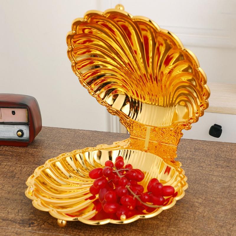 European Fruit Plate, Alloy Household Shell Shape Open Plate, Gold Niche Retro Snack Plate, Home Tabletop Living Room Decoration