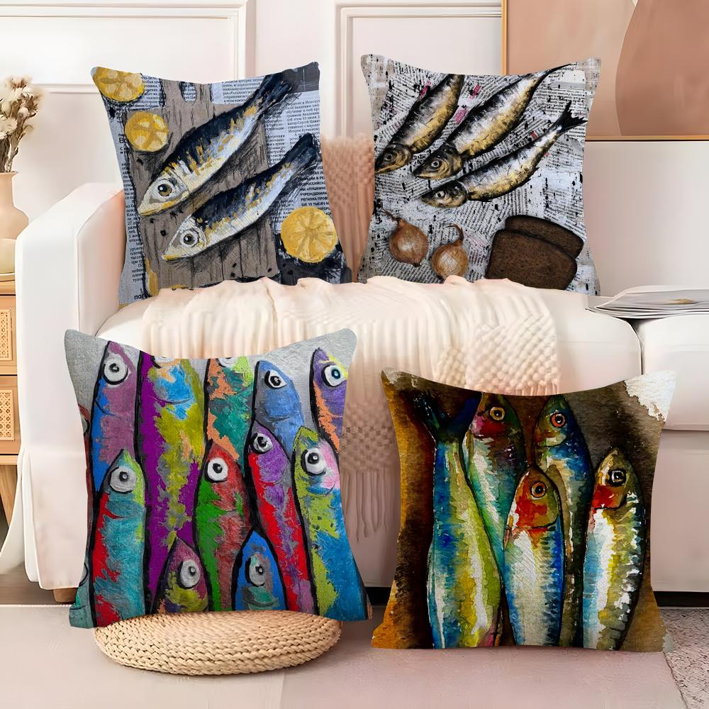 Colorful Sardine Lobster Pillow Case Living Room Sofa Decorative Cushion Cover Simple Household Light Luxury Printed Pillow