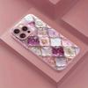 Plaid Flower Pattern Pink Metallic Paint Glass Hard Phone Case For iPhone 17 15 16 Pro Max 11 12 13 14 Plus 16E 17Air Cover