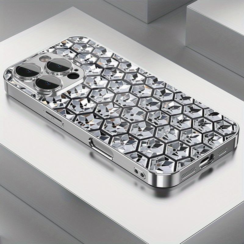 Hexagonal Diamond Pattern Electroplate Silver Phone Case For Samsung Galaxy S25 S24 S23 Ultra Plus FE Tempered Glass Cover