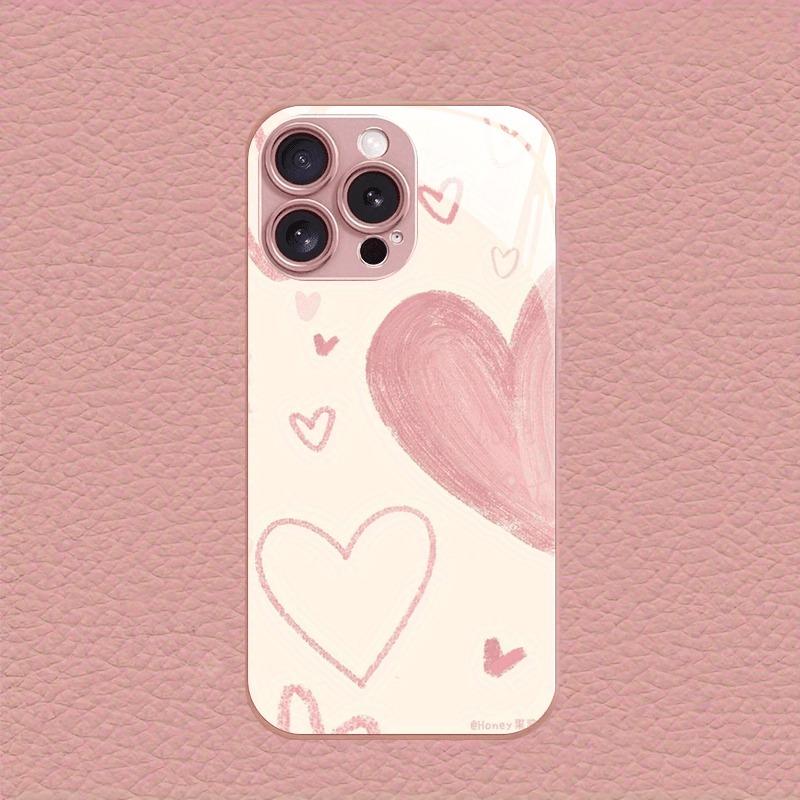 Fashion Simple Love Heart Pattern Metallic Paint Glass Phone Case For iPhone 17 Pro Max 11 12 13 14 15 16 Plus 17 Air 16E Cover