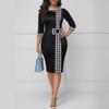 This elegant three-quarter sleeve dress features a sophisticated puzzle print design that blends European and American styles. Crafted from high-quality polyester, the dress offers both comfort and a flattering fit. Its unique pattern and timeless cut make it a versatile choice for various occasions, seamlessly transitioning from day to night. The durable material ensures easy care and maintenance, making it a functional yet stylish addition to any wardrobe.