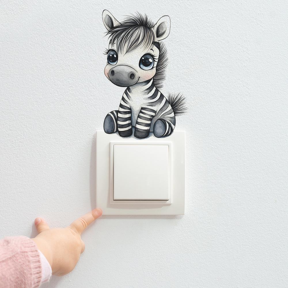 Cartoon Cute Baby Zebra Switch Plate Sticker for Bedroom Living Room Hallway Home Decor Self-Adhesive Removable Decal