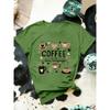 Super Cute Coffee-themed Printed T-shirt, Perfect for Spring and Summer.