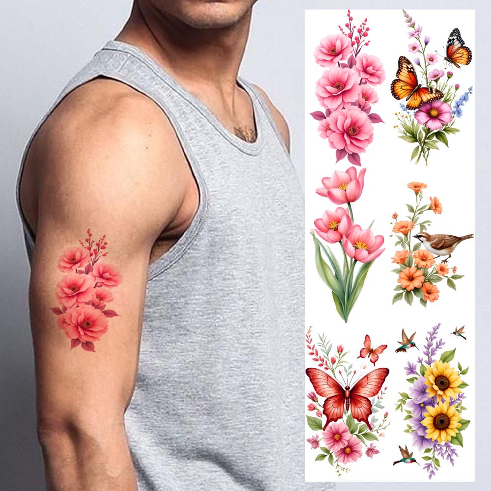 9pcs Temporary Tattoo Waterproof Long-lasting Body Stickers Sunflowers Dahlias Butterflies For Adult Shoulders Back