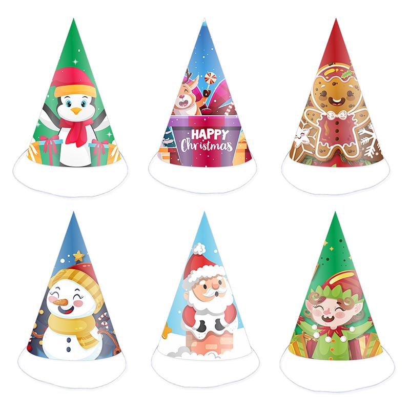 6Pcs Christmas Paper Hat Snownman Elk X-mas Festival Party Caps Foldable Castle Triangular Hats Christmas Party Supplies