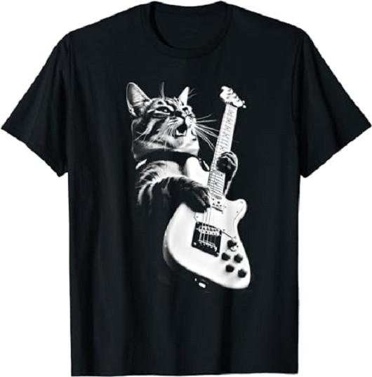 Rock Cat Playing Guitar - Funny Guitar Cat T-Shirt - Vintage T Shirt Unisex T-Shirt