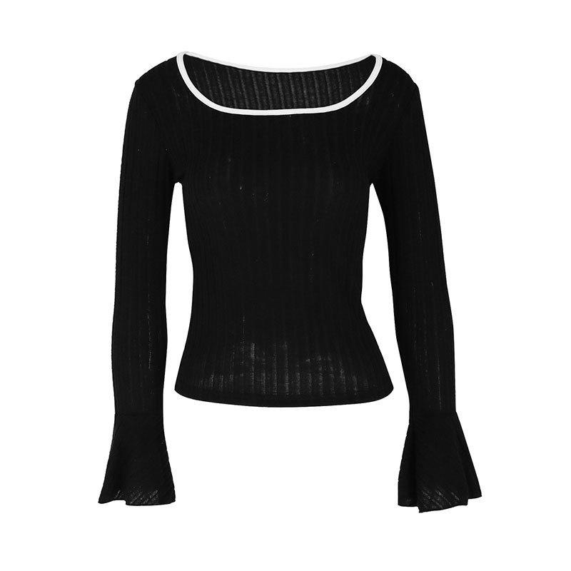 New Solid Color Long-sleeved Pullover Knitted Slim Fashionable and Sexy Low-necked Women's Clothing