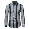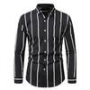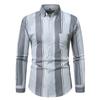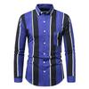 Men's Navy Blue Red Stripe Shirt Button Down Collar Long Sleeve Business Casual Shirt