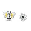 Black and White Design Black Zircon Cute Bee and Flower Stud Earrings