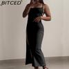 BITCED Women's Sexy Strappy Split Dress Fitted Back with Tie-Up Detail Exposed Back Summer Party Maxi Dress