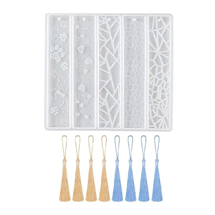 Cat Paw Heart Rectangle Bookmark Epoxy Mold with 8 Tassel Transparent Resin Mold