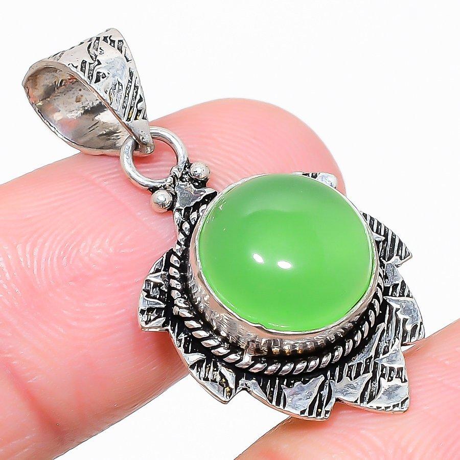Title :- Green Chalcedony Gemstone 925 Silver Jewelry Pendant 1.38"