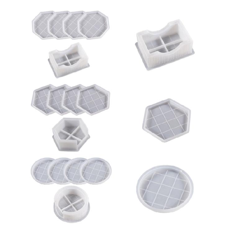 1/5Pieces Round Octagon Epoxy Casting Mould Resin Tray Coaster Mould Kit DIY