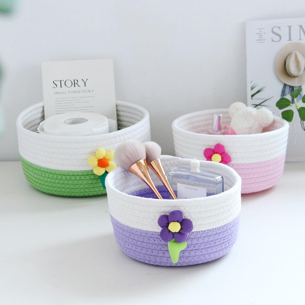 Children's Toy Storage Barrel Snack Box Handmade Cotton Basket Woven Desktop Storage Flower Basket Organiser