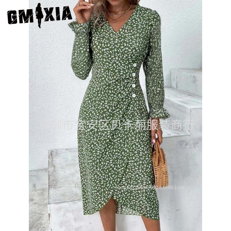GMXIA Women's Fashion Autumn Winter Long Sleeve V-Neck Casual Dresses