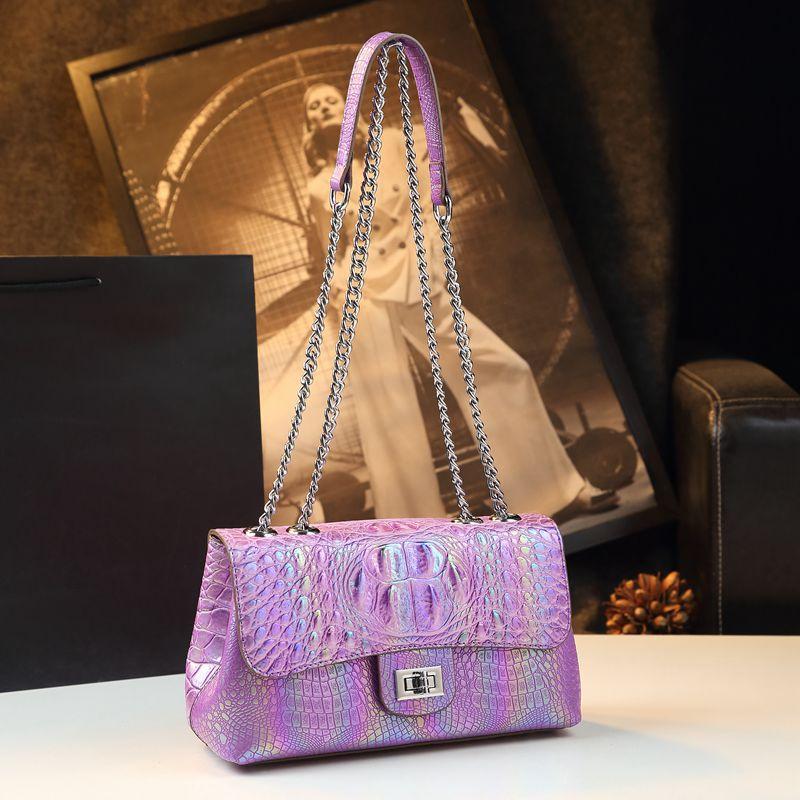 White Crocodile Pattern Women's Bag Big Brand Lock Small Square Bag Fashionable Shoulder Crossbody Bag Chain Bag