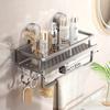 1pc Heavy-Duty Rustproof Shower Organizer - Bathroom Shelf with Towel Hooks, Space-Saving Bathroom Storage, No-Drill Installatio