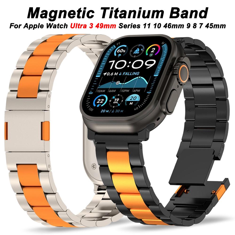 Magnetic Titanium Band for Apple Watch Ultra 3 2 49mm Series 11 10 9 8 7 46mm 45mm Luxury Men Bracelet for Iwatch Se3 44mm Strap