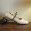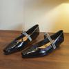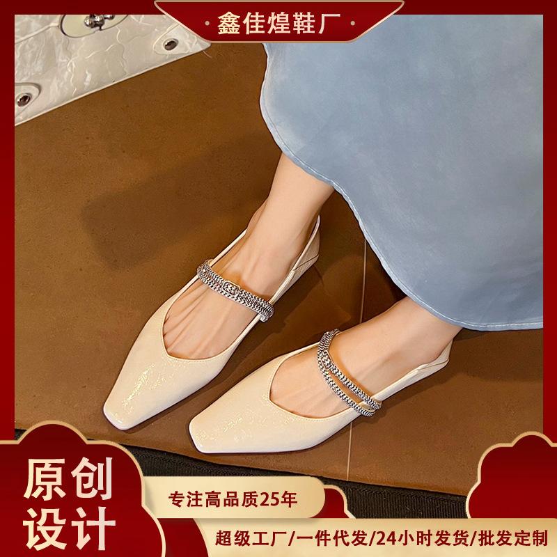 3189-7 Shiny Rhinestone One-word Strap~ Wedge Heel Small Square Head Flat Shoes Single Shoes Fairy Wind Can Be Worn with Two Heels