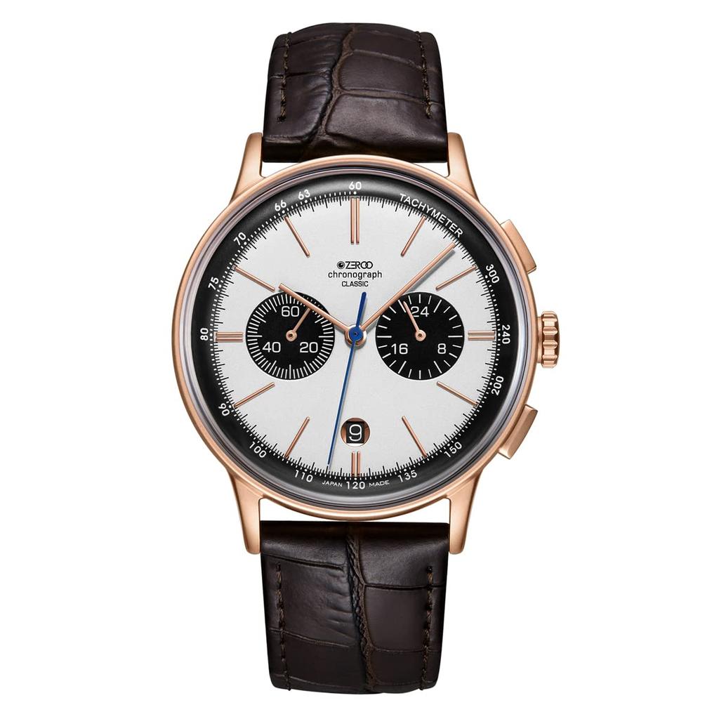 ZEROO CLASSIC3 Chronograph Quartz White with Rose Gold Model ZC003RWB Men's Watch, Case,