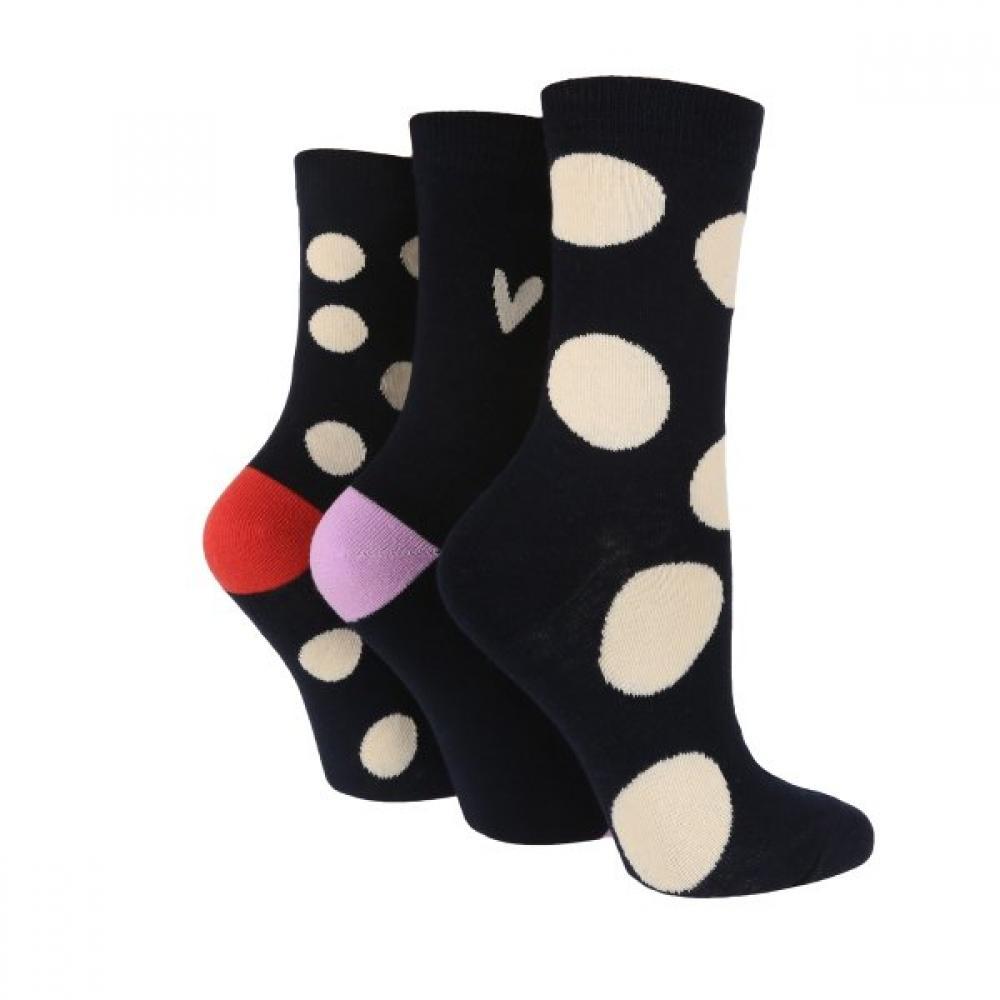 The women's navy big dot sock set features a design suitable for casual styles, with a big dot pattern as a point of attraction, emphasizing comfort for everyday wear.