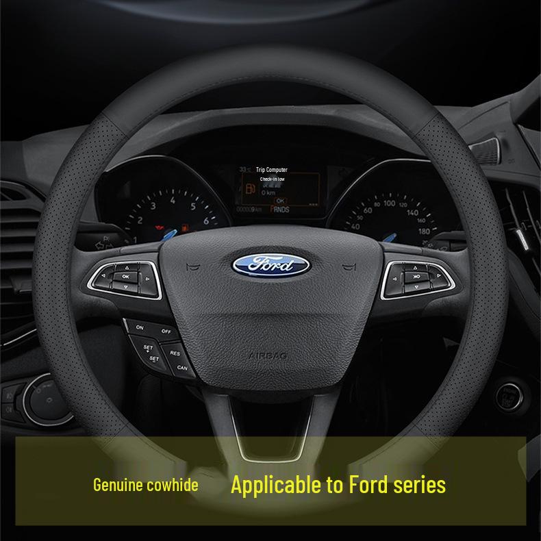 Premium Genuine Leather Steering Wheel Cover for Ford – Ultra-thin, Anti-slip Fit for Edge, Focus, and Yi Bo Models