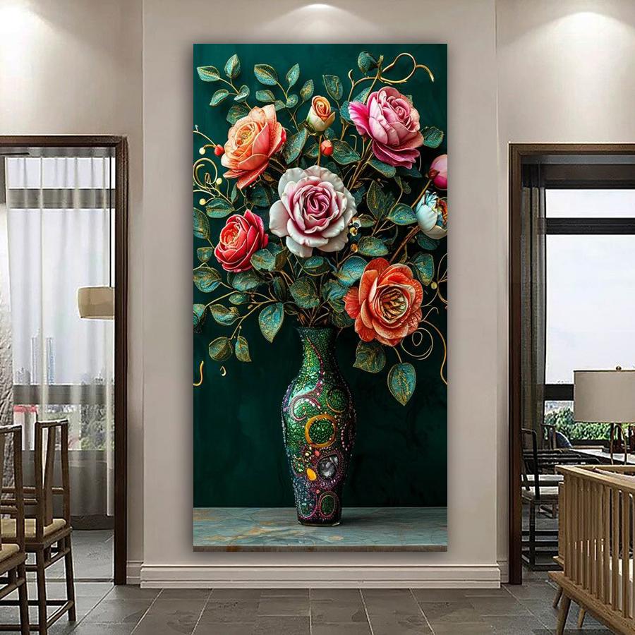 Still Life Flower Vase Large Size Diamond Painting Floral Diy Full Square Round Drill Rhinestone Embroidery Mosaic Cross Stitch Kits