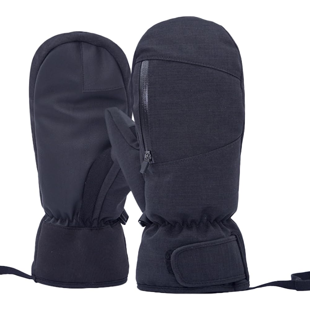 FUPUONE Ski and Snowboard Cold Weather and Waterproof Mittens with Five Inner Fingers Gloves, (Black, XL)