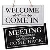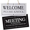 Double-Sided Office Door Hanger Sign, Acrylic Welcome Please Come In, Meeting In Progress Please Do Not Disturb, Red/Green and Wood Grain Options