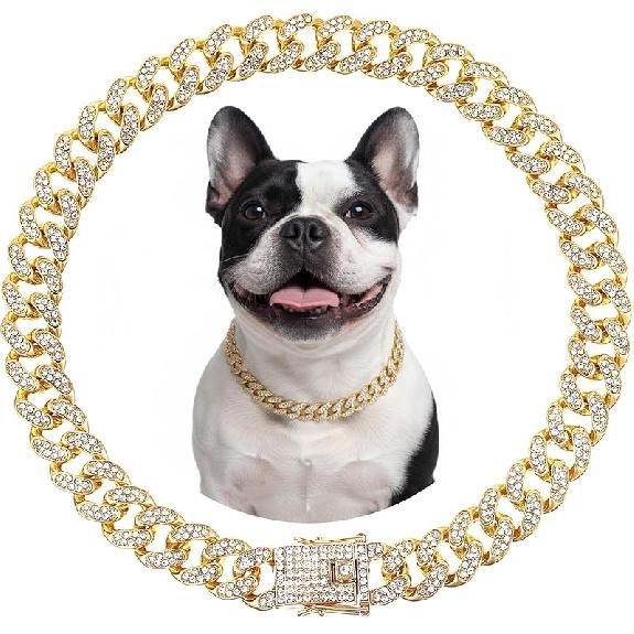 Sturdy Material: the dog chain collar is made of zinc alloy and embellished with zircon diamonds