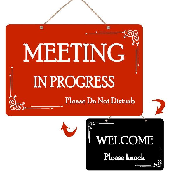 Meeting In Progress Sign,Do Not Disturb In Session Office Door Indicator,Welcome Please Knock Plaque for Business Home Office Meeting, Privacy Home