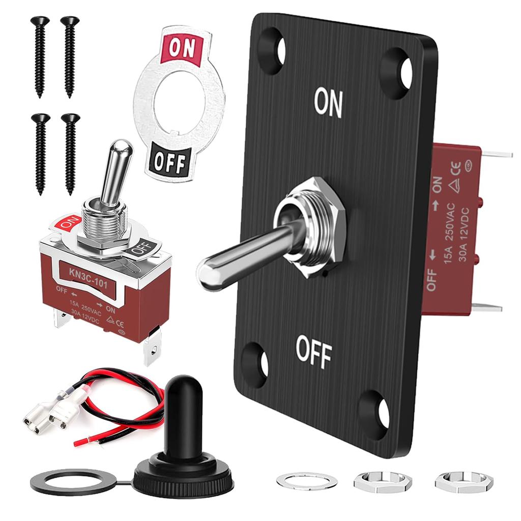 Waterproof Toggle Switch 12V DC 30A, Heavy Duty SPST 2 Pin On Off Switch with Mounting Panel, Boot Cover for Marine Automotive Car Boat RVs