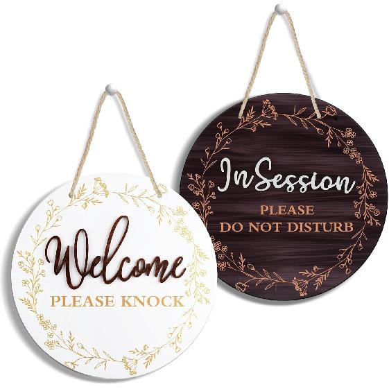 In Session Door Sign for Therapists, Double-Sided Wood Therapy Room Decoration with Hanging Rope, Session In Progress Door Sign, Therapy Office