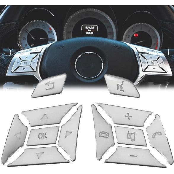 12Pcs Steering Wheel Buttons Sticker Trim Decoration Cover Sticker Replacement for Mercedes-Benz A B C E SLK SL ML GL ClA GlA W176 W212 W204 W246