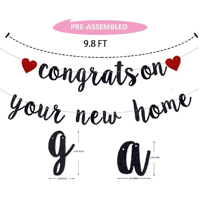 New Home New Chapter Banner, Pre-strung Congrats On Your New Home Banner, Black Glitter Housewarming Party Decorations, Home Decor