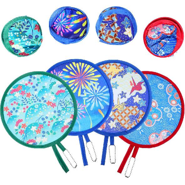 4 Pcs Round Foldable Fans, Handheld Fan Foldable Portable Fans Colorful Floral Cooling Fan Japanese Folding-Fan Handheld for Travel, Events,