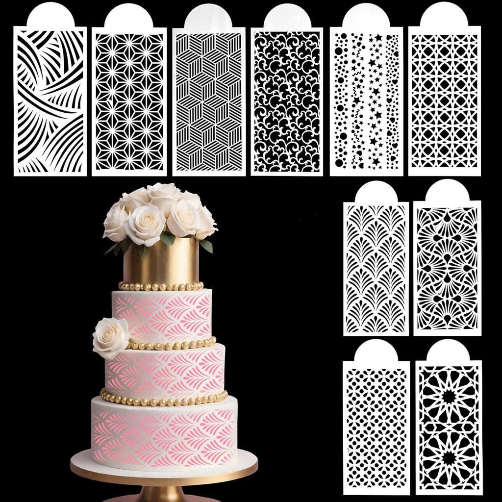 Cake Stencils for Buttercream, 10 PCS Mesh Floral Stencils for Cakes Decorating Supplies DIY Side Baking Stencil Reble Templates for Fondant Cookie