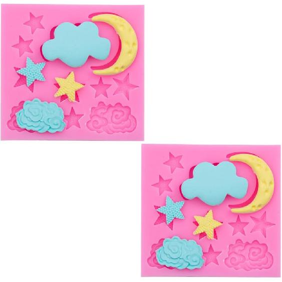 2 Pcs Moon and Star Molds Silicone, Moon Star Cloud Chocolate Molds, Cloud Fondant Mold for Chocolate Candy Baking Sugar Cakes Decorating