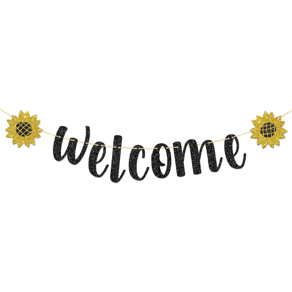 Welcome Banner, Black Glitter Hanging Sign Party Decorations, Induction Party | Home | School New Terms Beg Sign Bunting 6.3 Feet