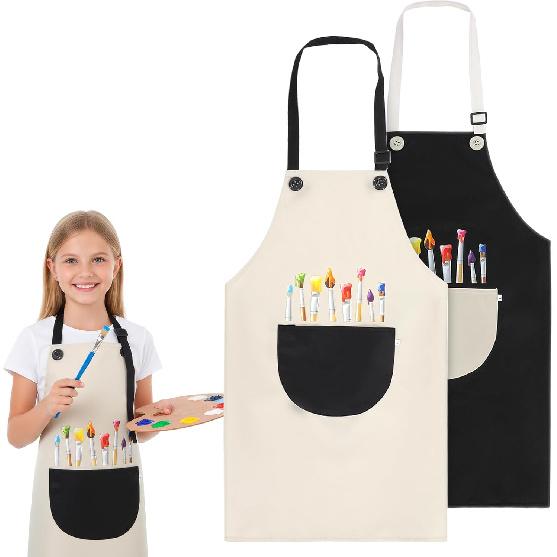 2Pcs Kids Aprons for Cooking, Adjustable Waterproof Painting Apron, Art Aprons with Pockets for Boys Girls Childs Painting Crafting Cooking Baking