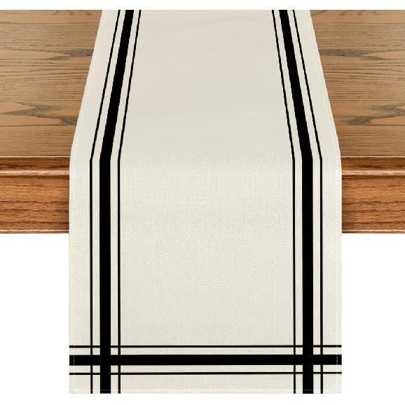 Artoid Mode Black Simple French Stripe Table Runner, Seasonal Spring Summer Kitchen Dining Table Decoration for Home Party Decor 13x72 Inch