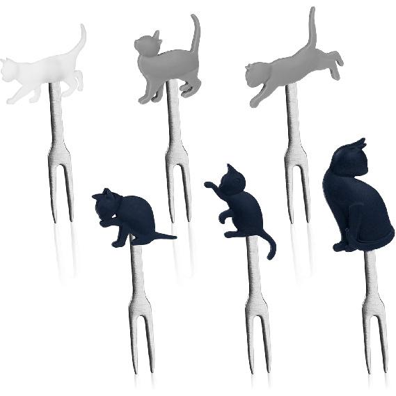 Cocktail Forks, 6-Piece Appetizer Forks, Cat Shapes, Stainless Steel and Silicone Small Forks for Fruits, Cheese, Appetizers
