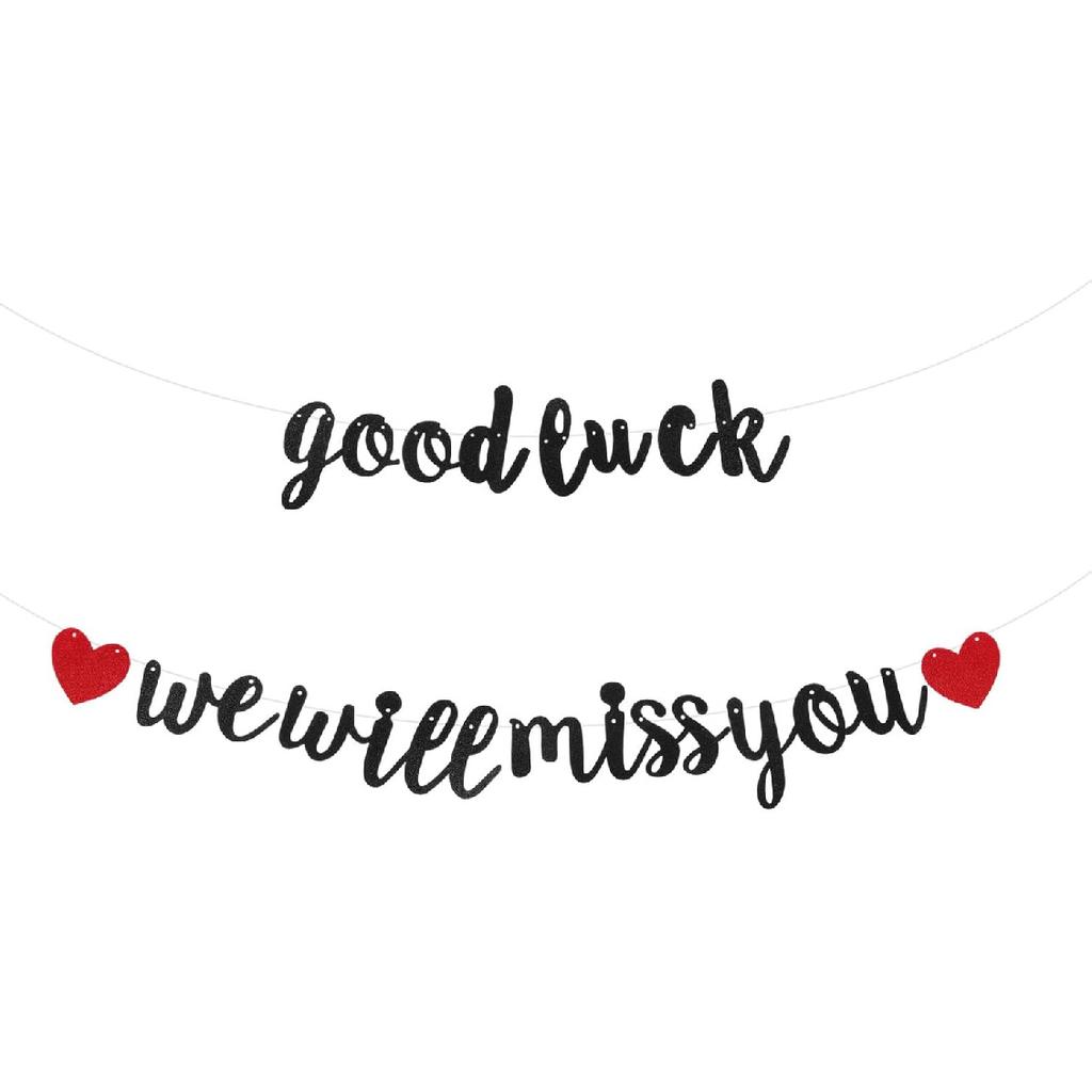 Grevosea Good Luck We Will Miss You Banner, Pre-Strung Glitter Farewell Banner Graduation Retirement Party Decorations for Going Away Farewell Party
